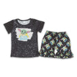 Black bleached strong shirt ruffle shorts girls set - 3-6M is backordered and will ship as soon as it is back in stock.