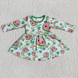 Cute print long sleeve baby girls st patrick's day twirl dresses
