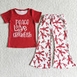 Peace love crawfish red shirt bell bottom pants girls outfits