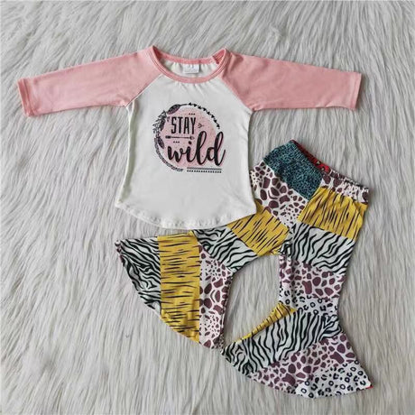$1100Unit price /UnavailableStay wild leopard patchwork bell bottom pants kids outfits