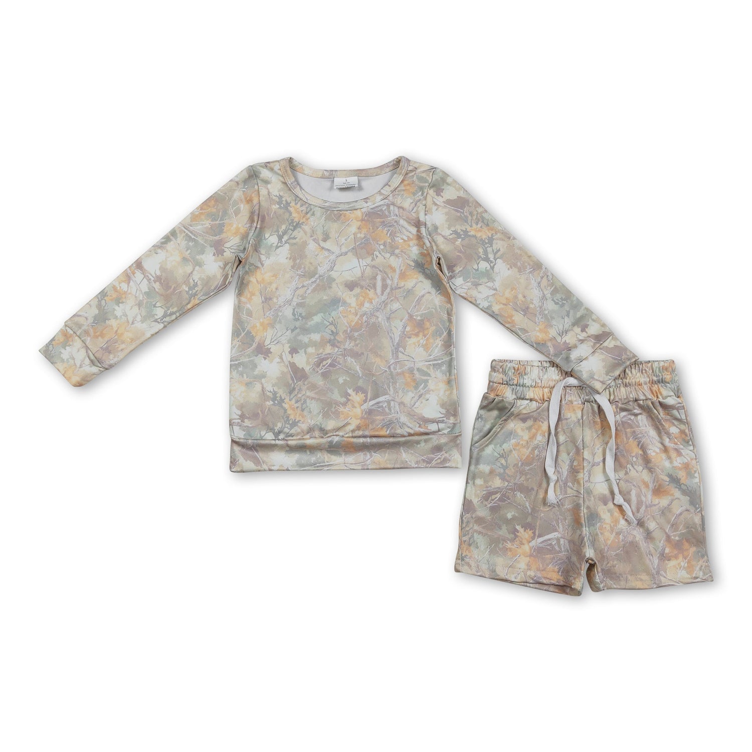 Leaves camo long sleeves top shorts girls outfits