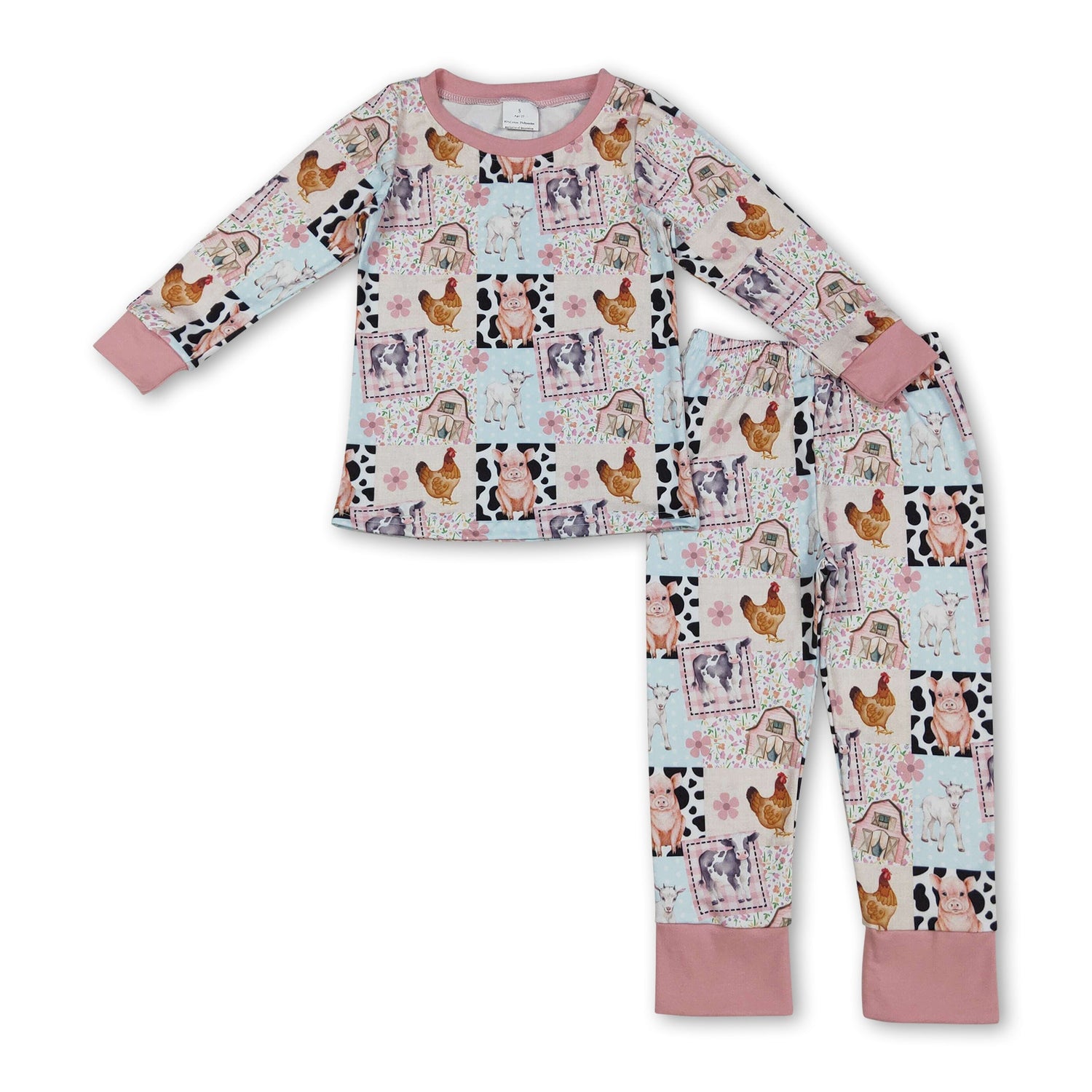 Long sleeves pig cow chicken floral girls farm pajamas - 3-6M is backordered and will ship as soon as it is back in stock.