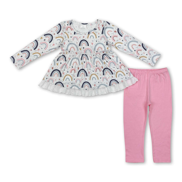 Rainbow heart tunic pink leggings girls clothing set - 3-6M is backordered and will ship as soon as it is back in stock.