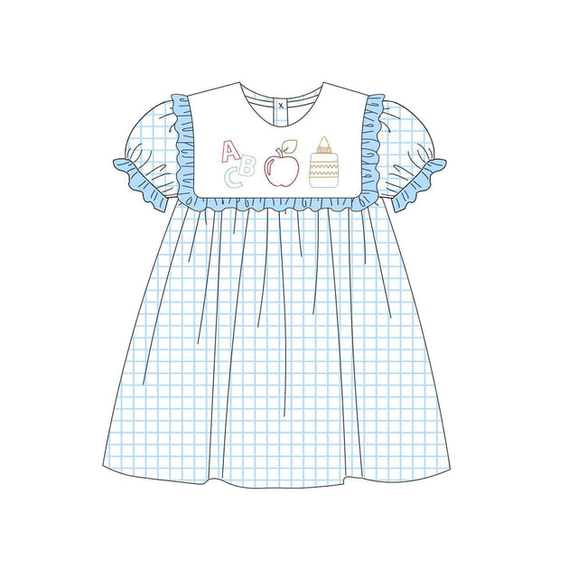 ABC glue apple plaid kids girls back to school dress