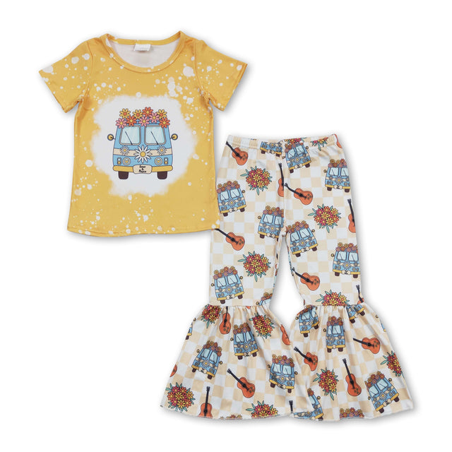 Bleached top floral plaid guitar pants girls clothing - 3-6M is backordered and will ship as soon as it is back in stock.