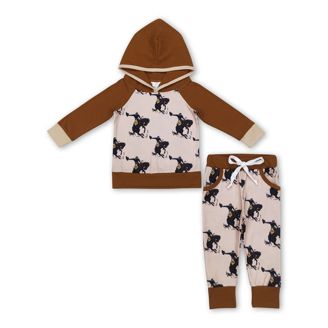 Brown horse rodeo hoodie pants western kids boy outfits - 3-6M is backordered and will ship as soon as it is back in stock.