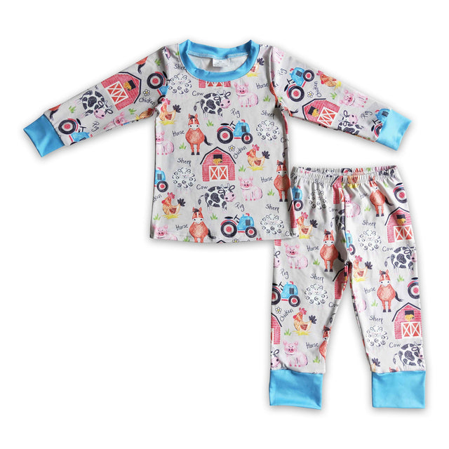Cow horse pig chicken kids boy farm pajamas - 3-6M is backordered and will ship as soon as it is back in stock.