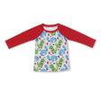 Dinosaur heart long sleeves kids valentine's raglan - 3-6M is backordered and will ship as soon as it is back in stock.