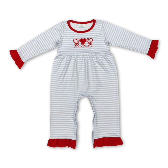 Grey stripe heart baby girls valentine's romper
