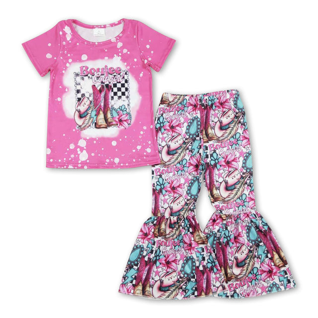Hot pink cowgirl boots hat top pants kids outfits - 3-6M is backordered and will ship as soon as it is back in stock.