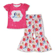 Hot pink dog flower top pants girls clothing set