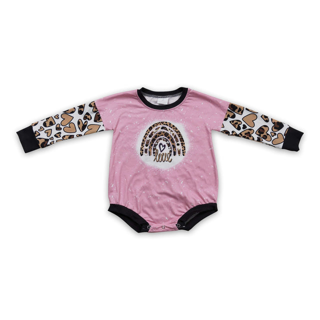 Leopard love rainbow pink baby girls Valentine's romper