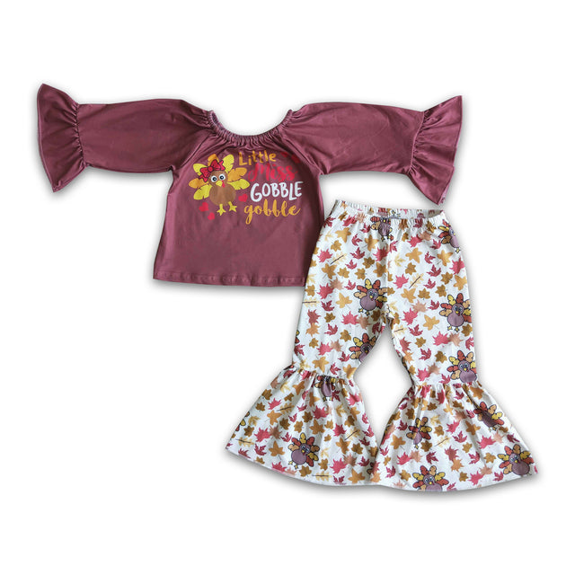 Little miss gobble gobble turkey shirt thanksgiving clothing