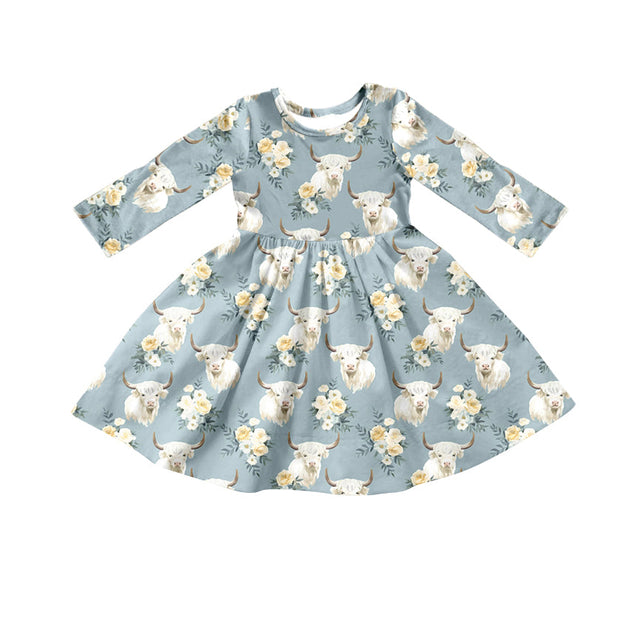MOQ 5 highland cow floral long sleeves girls dresses - 3-6M is backordered and will ship as soon as it is back in stock.