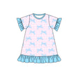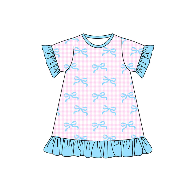 Pink plaid bow short sleeves ruffle girls dresses