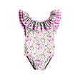 Pink plaid floral one piece kids girls swimsuit