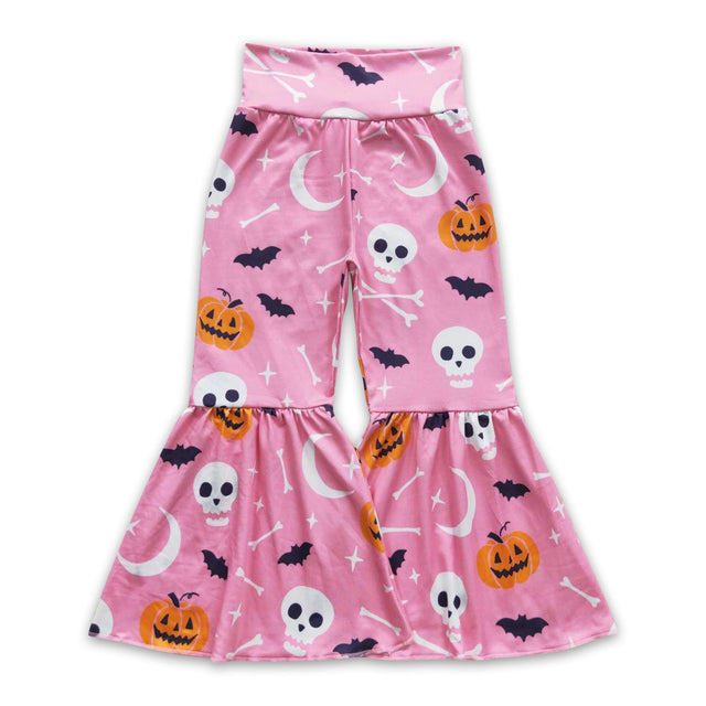 Pink pumpkin bat baby girls Halloween bell bottom pants