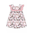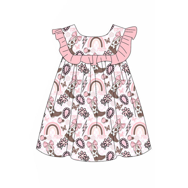 Pink ruffle boots bow rainbow western girls dresses - 3-6M is backordered and will ship as soon as it is back in stock.