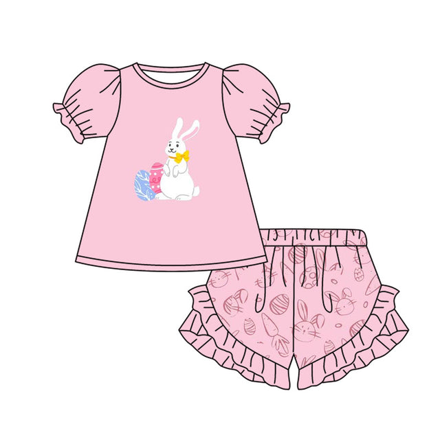 Pink short sleeves bunny eggs top shorts girls Easter clothes