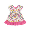 Pink short sleeves floral rainbow kids girls dresses