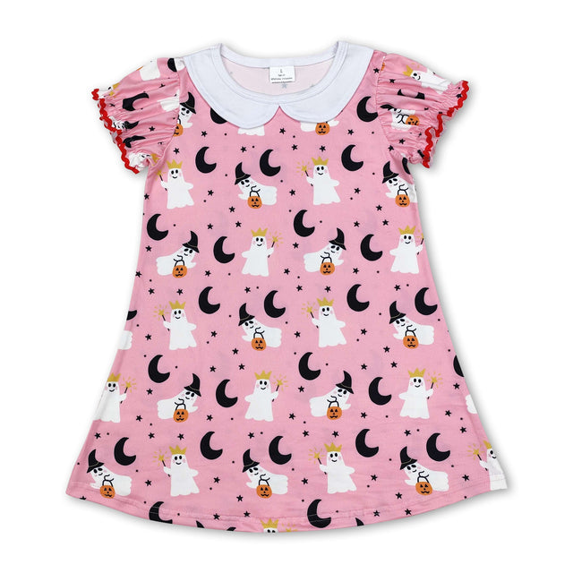 Pink short sleeves ghost pumpkin baby girls Halloween dress