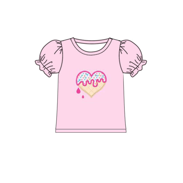 Pink short sleeves heart girls valentines shirt