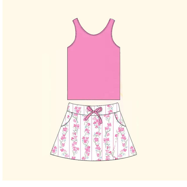 Pink sleeveless top stripe floral skirt kids girls clothes