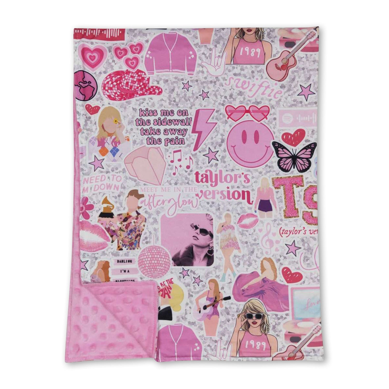 Pink smile butterfly heart glasses singer girls blanket - 29*43 inches is backordered and will ship as soon as it is back in stock.
