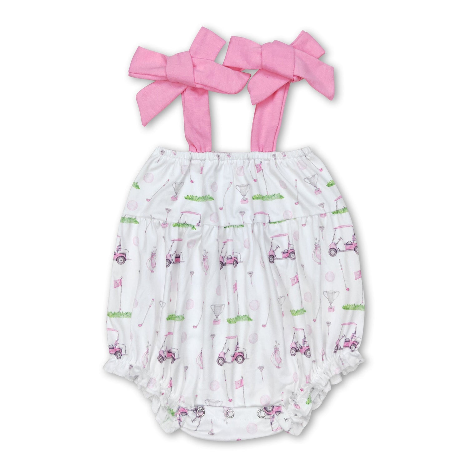 Pink straps golf baby girls summer romper - 0-3M is backordered and will ship as soon as it is back in stock.