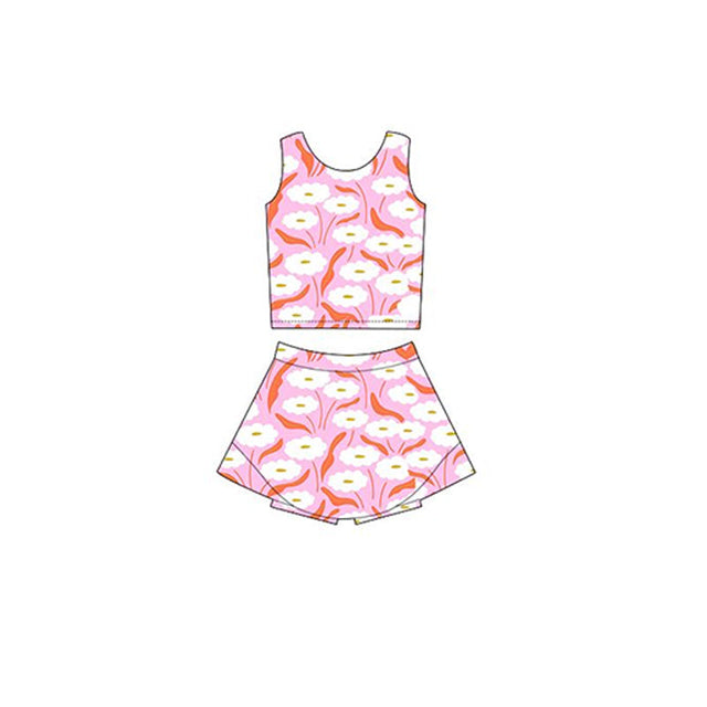 Pink white floral sleeveless top skirt girls active set - 12-18M is backordered and will ship as soon as it is back in stock.
