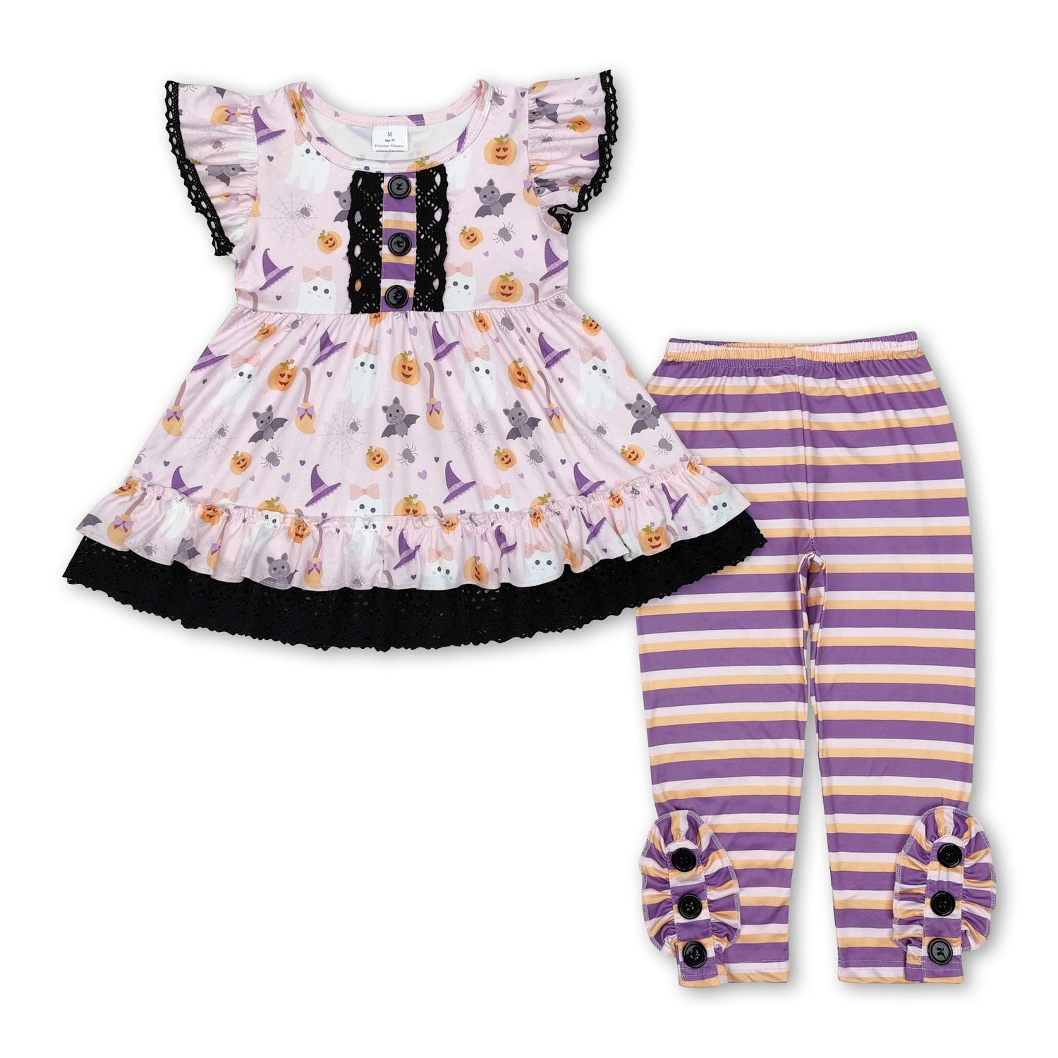 Pumpkin ghost bat tunic stripe leggings girls Halloween clothes