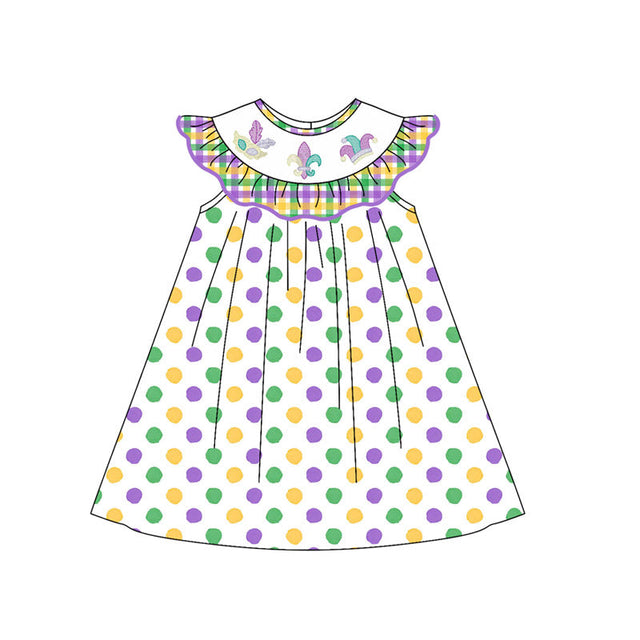 purple green yellow print long sleeve girl mardi gras dress