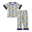 Purple short sleeves alligator kids girls Mardi Gras pajamas