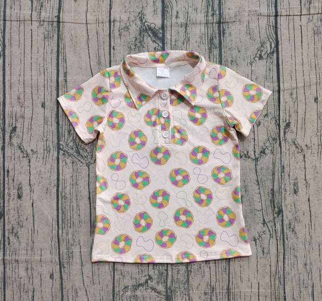 Purple yellow green donuts boys Mardi Gras polo shirt