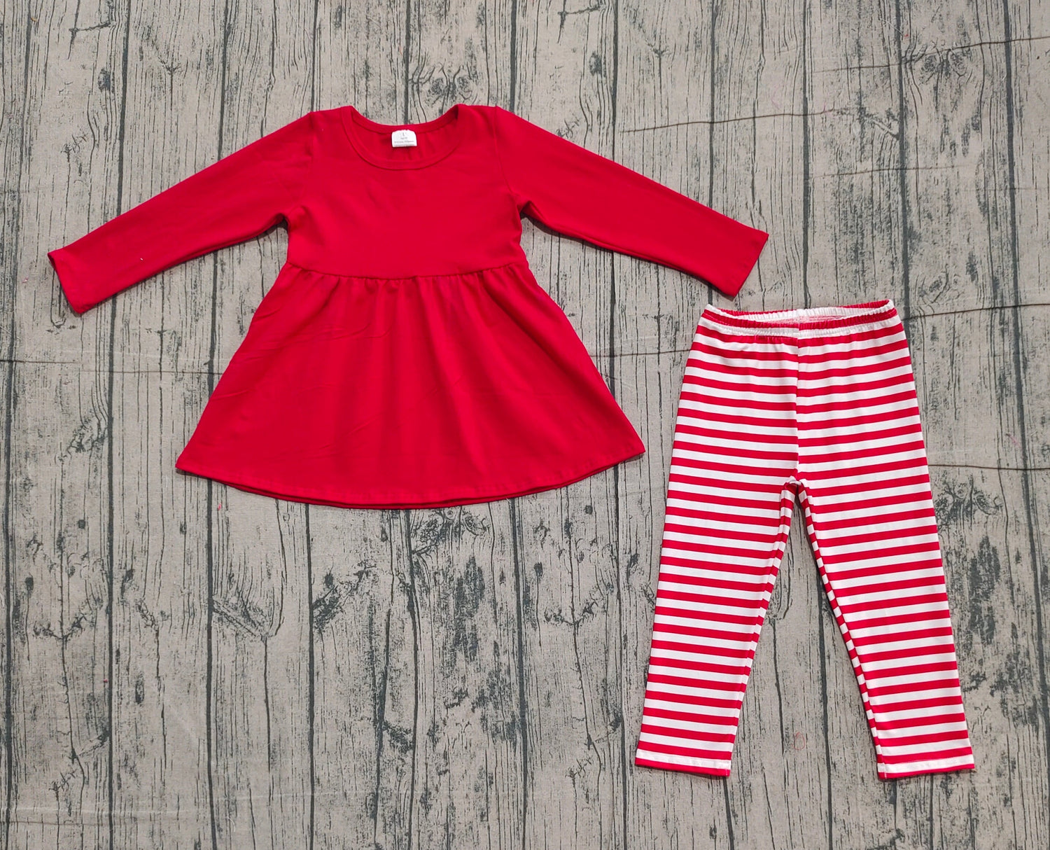 Red long sleeves tunic stripe leggings girls outfits - 3-6M is backordered and will ship as soon as it is back in stock.