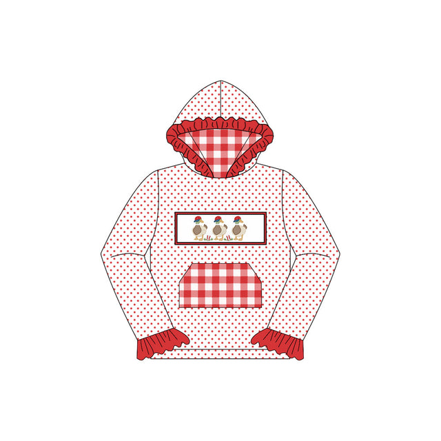 Red polka dots dog plaid pocket duck kids girls hoodie