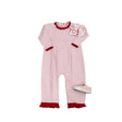 Red ruffle pink stripe long sleeves girls valentine's romper