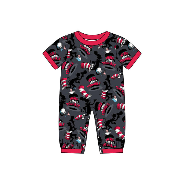 Red short sleeves cat hat baby boys romper - 0-3M is backordered and will ship as soon as it is back in stock.