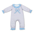 Ruffle long sleeves light blue bow stripe baby girls romper