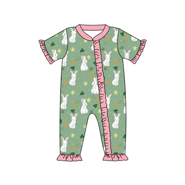Ruffle short sleeves bunny carrot baby girls Easter zip romper