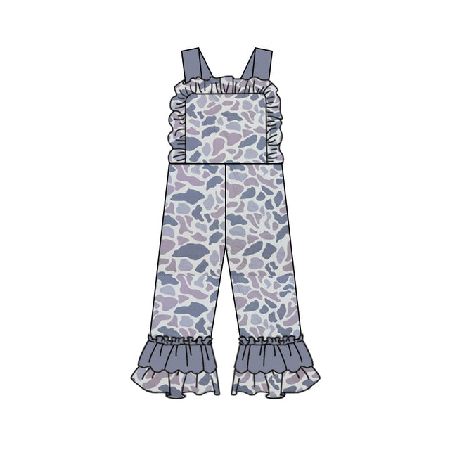 Ruffle straps grey camo baby girls hunting overalls - 3-6M is backordered and will ship as soon as it is back in stock.