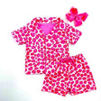 Short sleeves hot pink leopard girls button down pajamas - 3-6M is backordered and will ship as soon as it is back in stock.