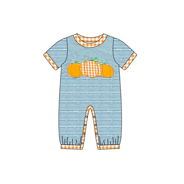 Short sleeves stripe pumpkin baby boy fall romper - 0-3M is backordered and will ship as soon as it is back in stock.