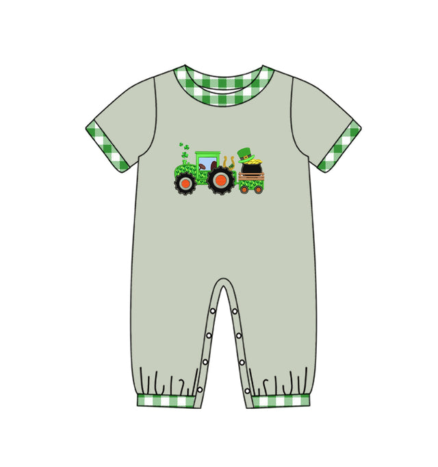 Short sleeves tractor clover baby boy st patrick's romper