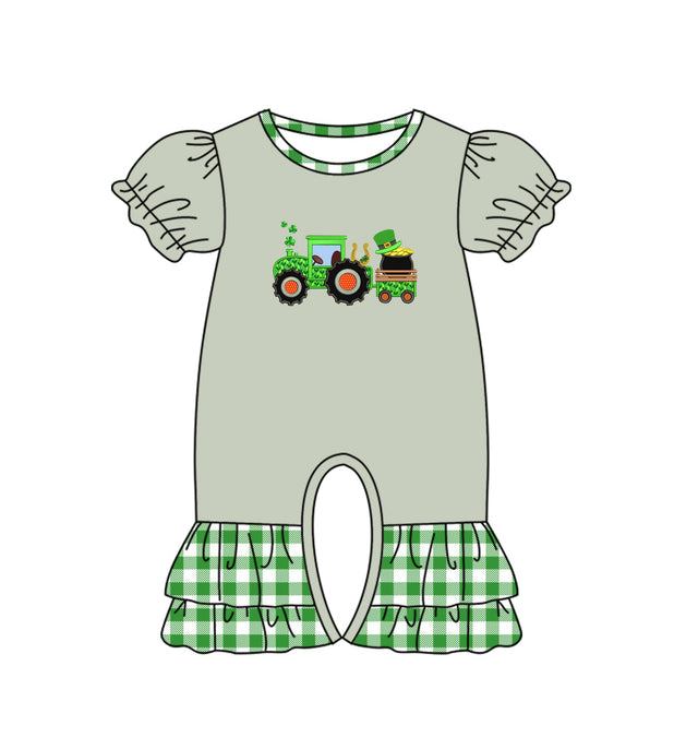 Short sleeves tractor clover baby girl st patrick's romper - 0-3M is backordered and will ship as soon as it is back in stock.