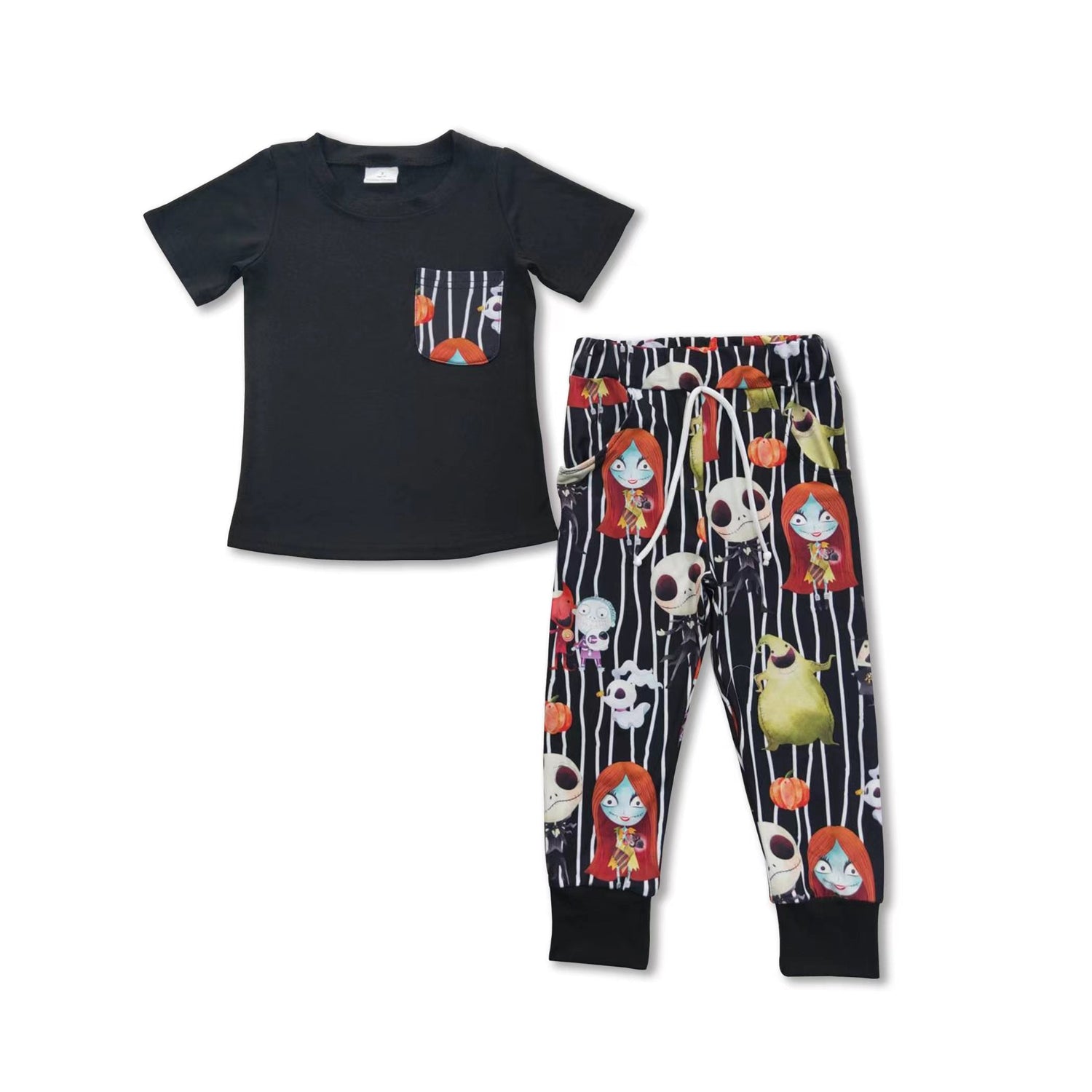 Skull pocket shirt moon halloween kids boy outfits - 3-6M is backordered and will ship as soon as it is back in stock.