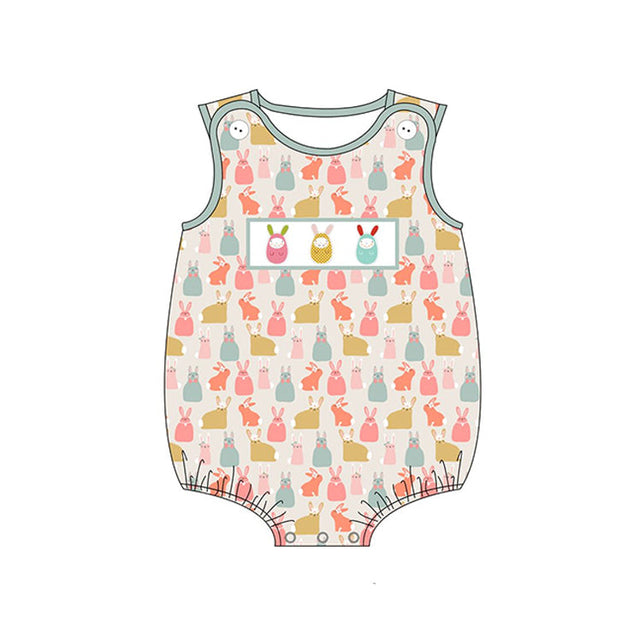 Sleeveless bunny eggs baby boys Easter romper - 0-3M is backordered and will ship as soon as it is back in stock.