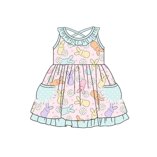 Sleeveless bunny floral pockets girls Easter dresses - 3-6M is backordered and will ship as soon as it is back in stock.