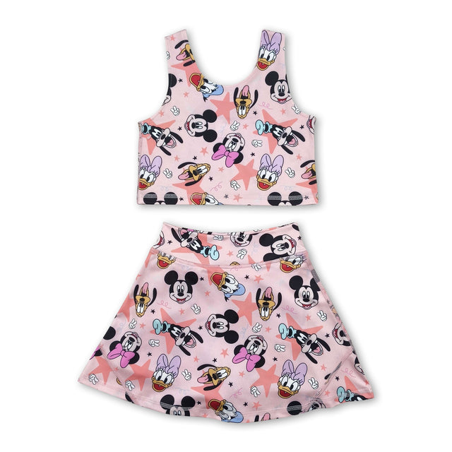 Sleeveless duck mouse top skirt kids girls active wear set
