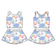 Sleeveless light blue floral top skirt girls activewear set - 3-6M is backordered and will ship as soon as it is back in stock.